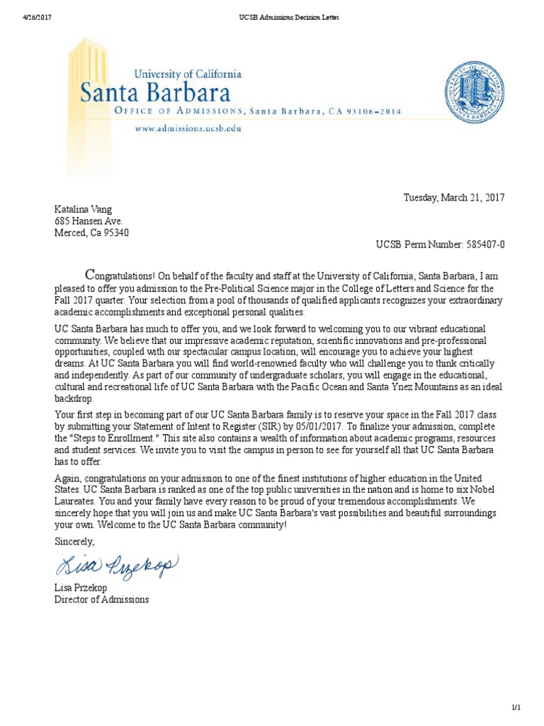 We understand that students and counselors may face challenges in submitting required documents by the deadlines. Office of admissions 1210 cheadle hall university of california santa barbara santa barbara ca 93106 2014. Admission status will not be affected by the document deadline.